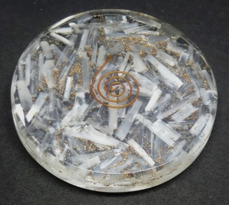 SELENITE + BLACK TOURMALINE ORGONE COASTER